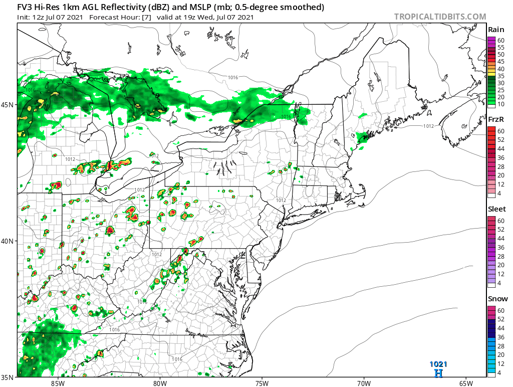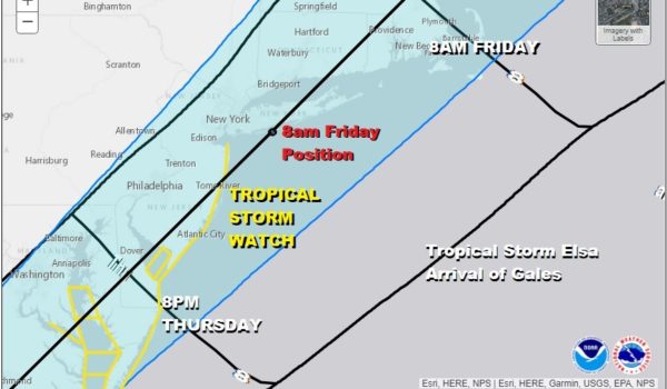 The period of time to watch will be from midnight Friday to noon Friday with the worst of it in the hours approaching daybreak until about 8 or 9am. Winds are a tougher call because that will depend on the track. If the low center passes to say NYC, we would be on the east side with likely less rain and more wind. If the center cuts Long Island in half then conditions will be different west of the low verses east. Also we don’t know how strong the low will be and if it doesn’t react to the upper trough over the Great Lakes, then we could see a weaker system that is more of a nuisance then anything else. These variables need more time for us to resolve and we have all day Thursday to figure that out. Once Elsa goes by to our north weather conditions should improve Friday though another shower or thunderstorm is possible in the evening. Then we move a head to a warm and humid weekend with only a slight chance for a pop up downpour or thunderstorm each afternoon.