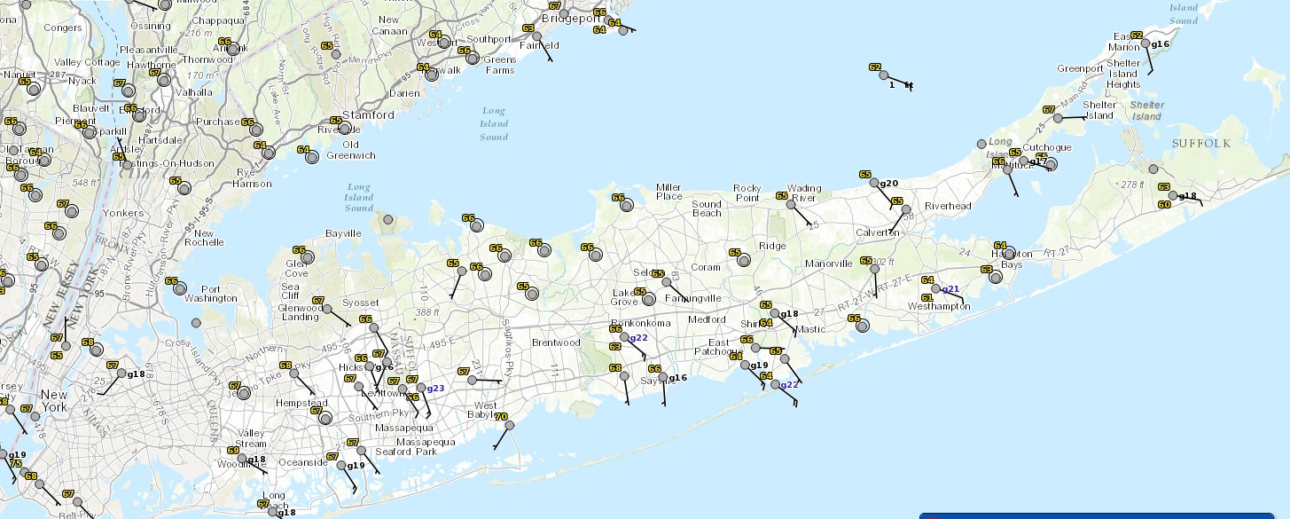 Right now temperatures are in the 60s with humidity levels at 90 percent or higher thanks to the downpours. So we are certainly saturated enough. Now it is just a question of whether we can heat the atmosphere a little. Central and Southern New Jersey will see there temperatures climb up toward or even over 80 in places. But it is not likely to warm like that on Long Island. This is why Long Island remains under a slight risk for severe weather late this afternoon and evening.