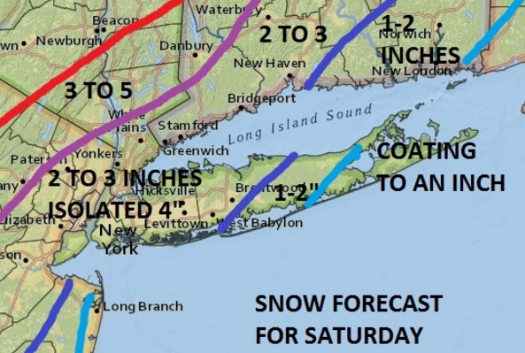 Winter Weather Advisory is in effect for Long Island for late tonight into Saturday morning. With respect to the snow forecast for Long Island we can say that nothing happens until after midnight tonight. Snow will develop during the early morning hours and there will be one solid burst of snow right before daybreak and then a change over to rain as temperatures warm. The question is whether that change over is delayed by an hour or so which could mean we finish closer to the higher end of the ranges then the lower.