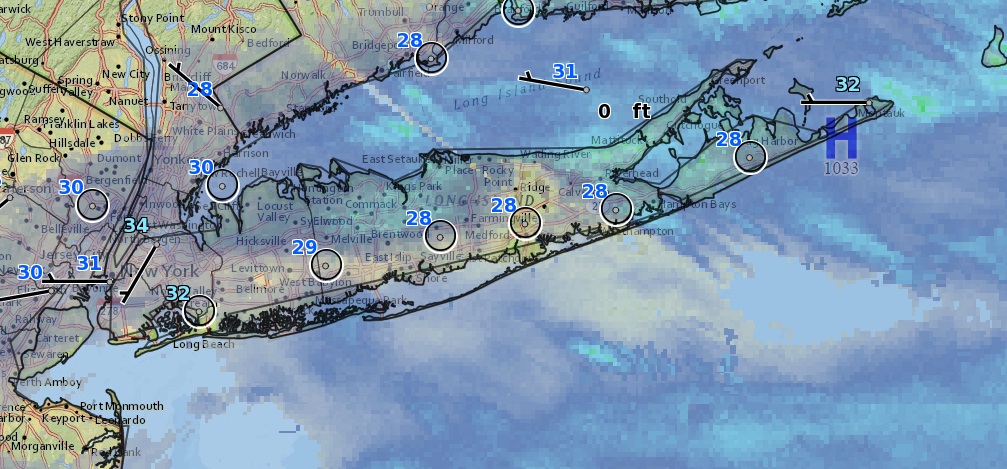 Sunday night will be clear with light winds which sets us up for ideal radiational cooling conditions. Temperatures will drop down into the teens especially in the Pine Barrens in Suffolk County. Monday will be dry and cold with some sunshine and highs in the upper 30s.
