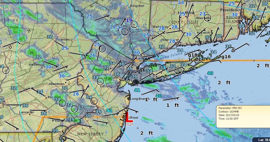 We see on the satellite clouds with the brighter white higher cloud tops moving off the Middle Atlantic coast. Low pressure will be developing there and then arcing its way east, then northeast and then north. This probably means some occasional rain or wet snow and in colder areas a light accumulation on colder surfaces is possible. At most a coating to an inch is forecast unless we get some surprise precipitation development at the last minute. This threat continues tonight into Sunday morning before weather conditions improve and we see some sunshine later in the Sunday especially inland.