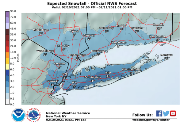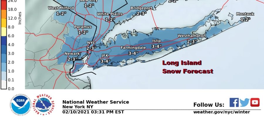 We have been watching this weather system headed our way from the Ohio Valley and each model run has nudged it a little further north. It is at the point now that Long Island should get a fluffy couple of inches out of this overnight into Thursday morning. Winter Weather Advisories are up for Long Island into Thursday morning as snow arrives around midnight or shortly afterward. It should be mostly done with by 8am or so.
