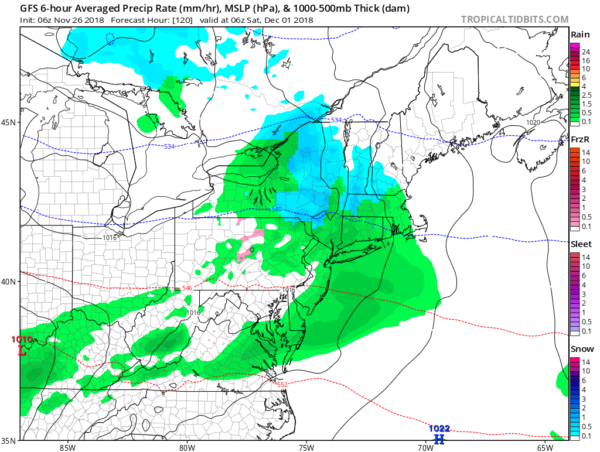 A weak shortwave overnight into Saturday could bring some chilly light rain to parts of the area. There will be another storm moving through later in the weekend, but it will bring with it mild air and temperatures should return to the 50s for several days. Have a great day!