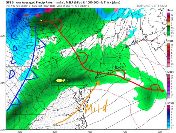 We’ll get a break in the action before more showers come in Thursday night into early Friday. On Friday we should see some clearing by the afternoon, and it will also be much milder with temperatures in the 50s to around 60. They will be very short-lived as this winter roller coaster continues.