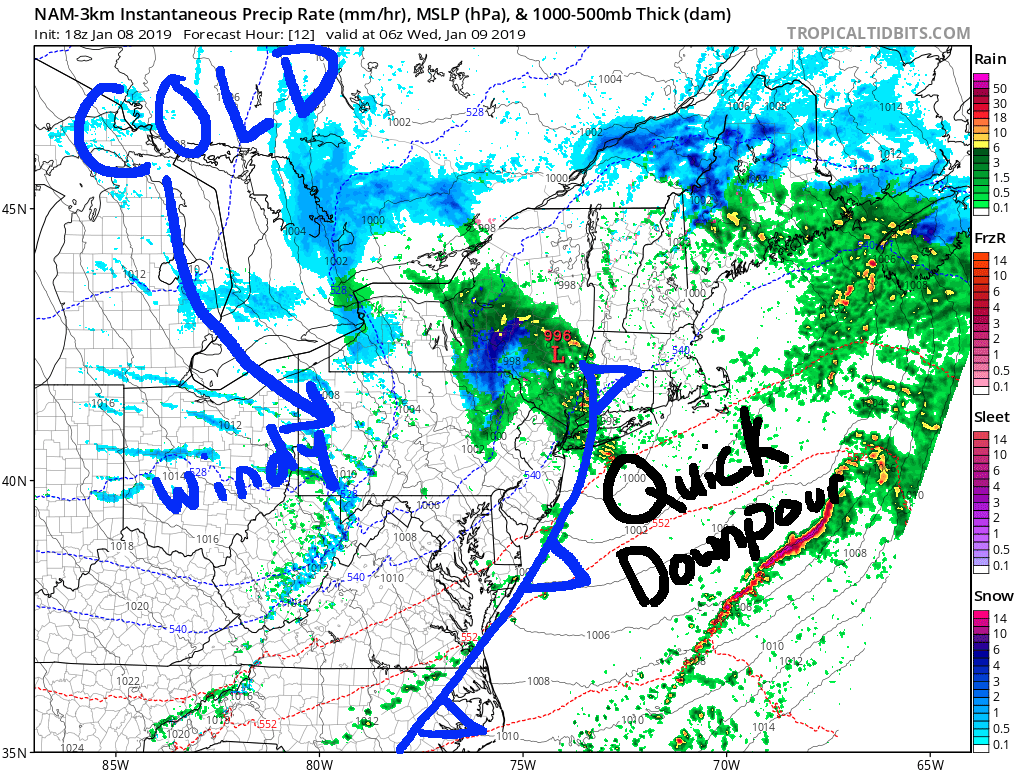 Dry conditions are then expected through Saturday. As the storm departs however, winds will pickup and temps will fall. Mid 40s on Wednesday will drop to mid 30s on Thursday. The winds will make it feel an additional 5-10 degrees colder. The wind chill on Thursday morning may drop into the teens! And even though winds will ease by Friday, it won’t get any better; that is when the real cold air settles in. Both Friday and Saturday will be either at or below freezing all day long.