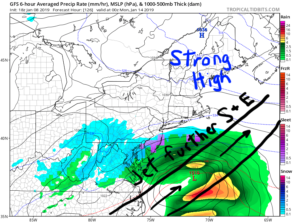 That brings us to Sunday. As discussed yesterday, we have two pieces of energy likely to come together. Upper air data supports the formation of a significant storm. The questions that remain are both path and placement. A strong high to the north could spare the area, much like it did once already this season.