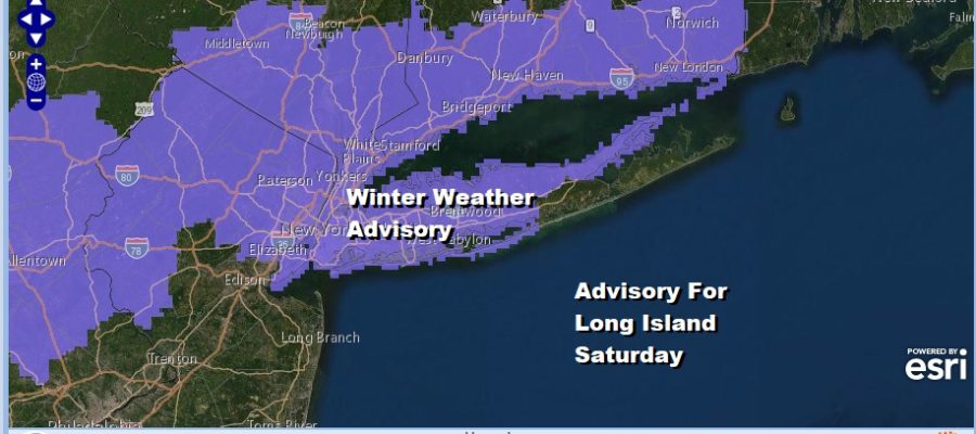 Winter Weather Advisory Long Island Except Southeast Suffolk Saturday The National Weather Service has thrown up a Winter Weather Advisory