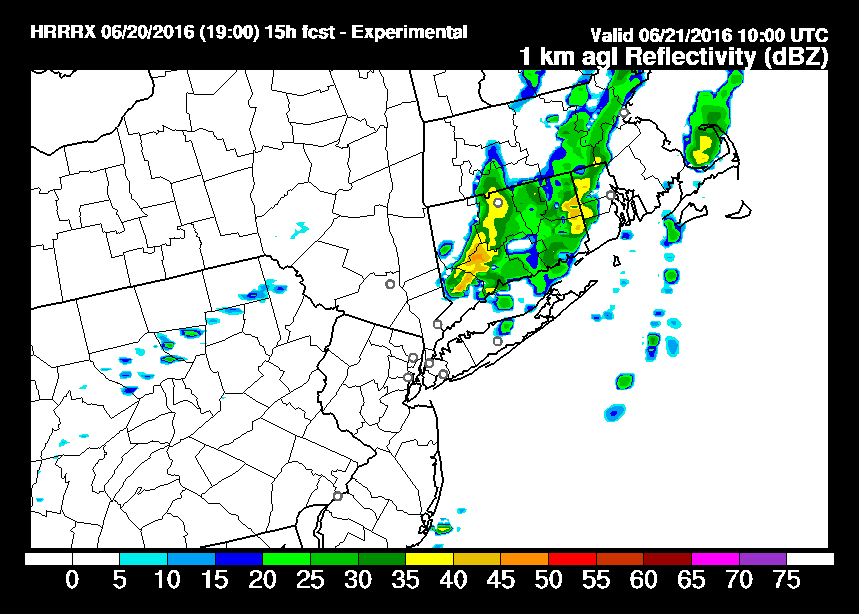 The HRRR model would have it all moving to the north crossing Connecticut. Honestly I can’t leave a shower or thunderstorm out of the forecast but don’t be surprised if either nothing happens, or a clap of thunder wakes you up out of a sound sleep.