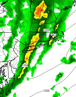 We are getting ready for the first of two rounds of showers and thunderstorms but for the first part of Friday we will just be sitting in clouds with perhaps a break or two of sun at most. The southeast wind from overnight has cooled the atmosphere down. Now we wait for the cold front to approach this afternoon and from mid afternoon until mid evening we will see some showers and a few possible thunderstorms. I don’t think thunderstorms for Long Island will be too strong. In fact the marine layer usually weakens them especially in Suffolk County. You can see the beginnings of those storms on the radars to the west.