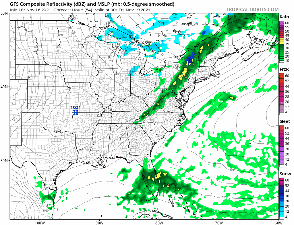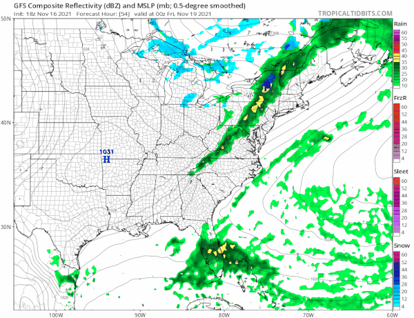 Late in the day some clouds roll in and after sunset we will see a round of showers and perhaps even a rumble or two of thunder during the overnight. The front will be moving offshore by daybreak so the showers will be done. Then another cold air mass arrives for Friday on gusty winds and some sunshine. Highs will just be in the mid to upper 40s.