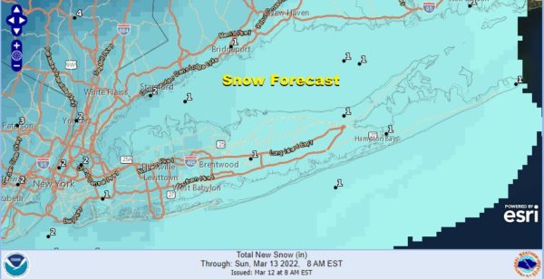 Long Island will mostly miss out on the heavier snow just to the west. There isn’t a winter weather advisory up at this time however we do have wind advisories in effect for later today and tonight. Low pressure is moving up the east coast and it is moving very fast. This limits the snow issue but winds will pick to 20 to 35 mph with gusts to 50 mph late today into Sunday morning.