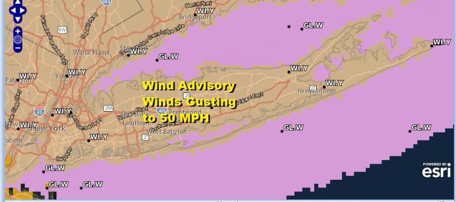 Wind Advisory Long Island Winds Gusting 40 to 50 MPH Late Today Tonight