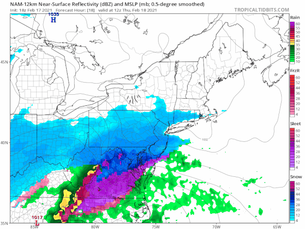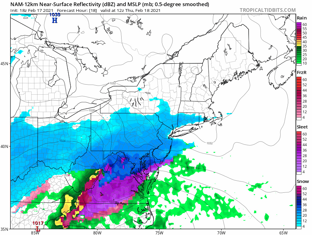 You can expect the snow to become heavy at times from late morning until late afternoon or early evening. Bands of heavy snow will set up and this should put down 4 or so inches (perhaps some spots a bit more) in that time frame. After that we will see snow (or perhaps a little sleet in the mix) continue during the nighttime hours. However a second wave develops on the frontal boundary to the south and a steadier snow returns early Friday morning.