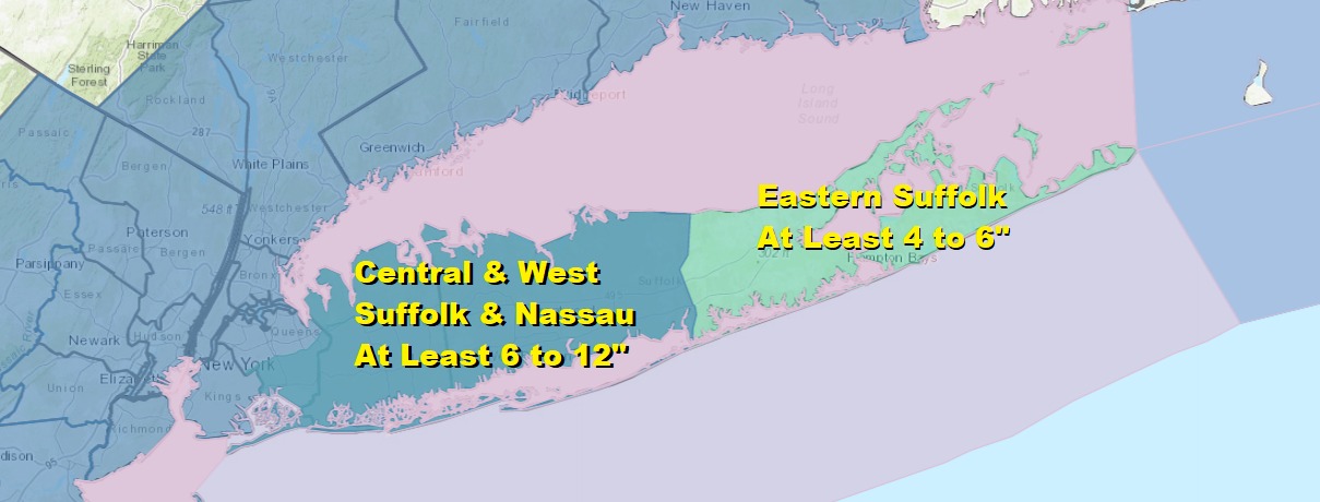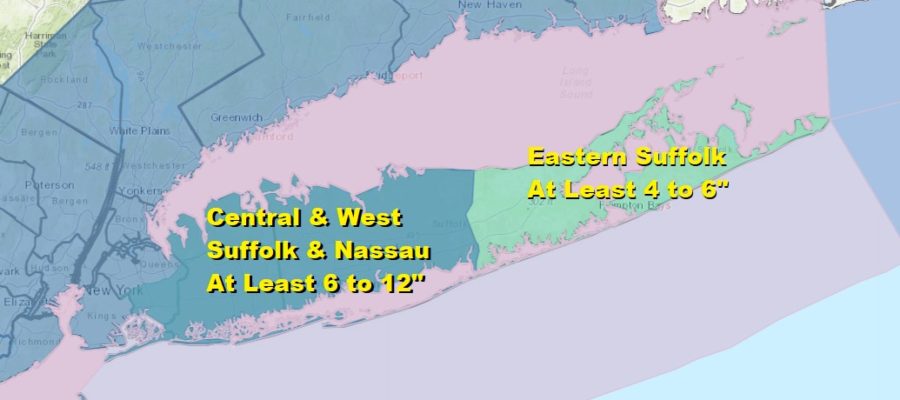 Winter Storm Watch Long Island Sunday Night Into Tuesday At least 6 to 12 Inches Forecast