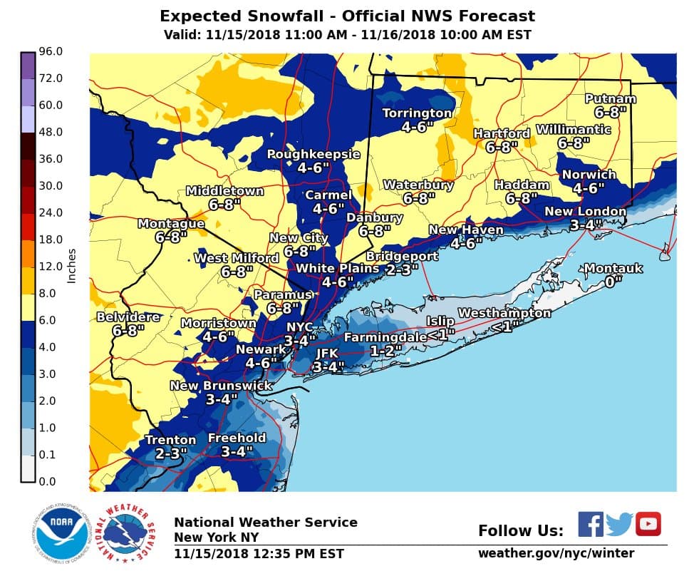 More robust model runs coming in today have also prompted advisories to change to Winter Storm Warnings for areas north and west of NYC. In doing so, they are saying these that areas are going to receive 6 or more inches of snow. Certainly a big development, but is hard to argue given what I am looking at this afternoon.